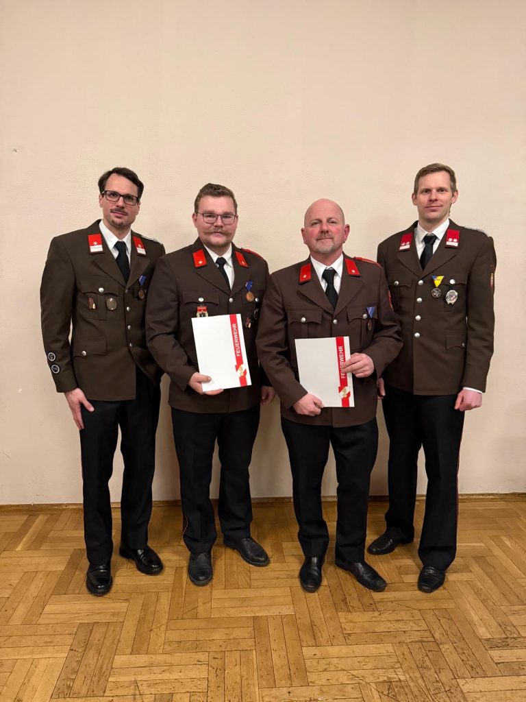In Würdigung der Leistungen beim Hochwassereinsatz 2024 wurden BI Manuel Fürtinger, SB Christian Pürrer und SB Maximilian Schitkowitz die Katastropheneinsatzmedaillen des NÖ Landesfeuerwehrverbandes verliehen.