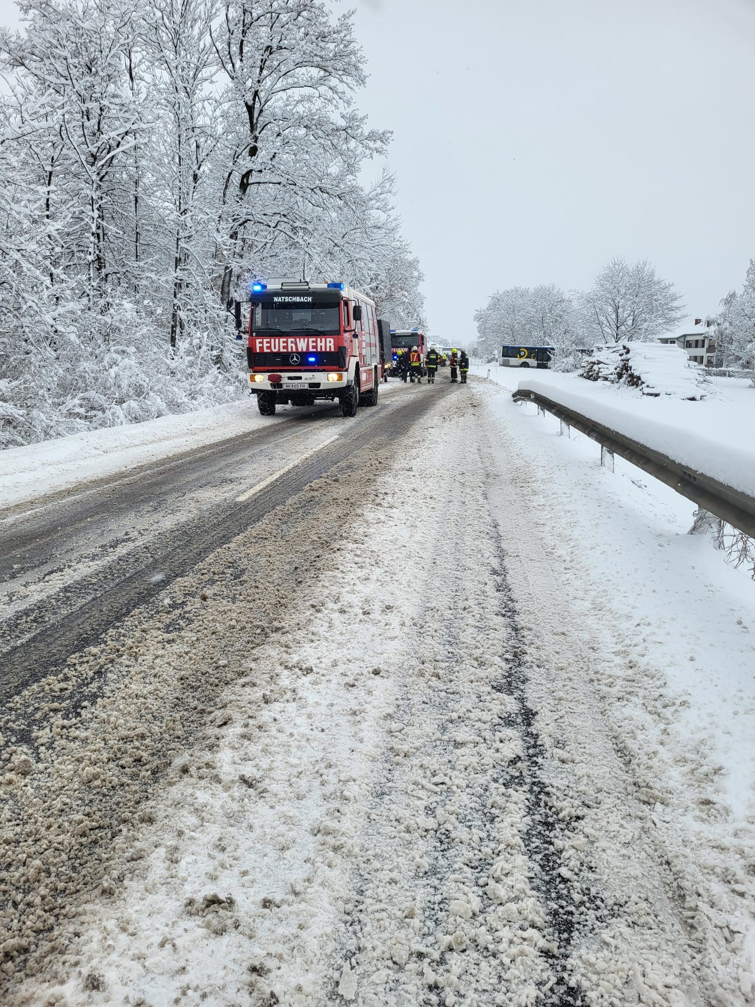 Der starke Schneefall in den frühen Morgenstunden des Freitags, 20. Februar, hielt auch die Freiwillige Feuerwehr Natschbach gleich zweimal auf Trab.