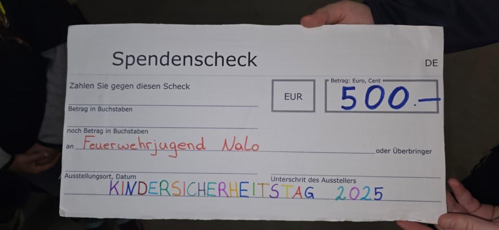Im Rahmen der letzten Jugendstunde durfte sich die Feuerwehrjugend der Feuerwehren Natschbach und Loipersbach über eine großzügige Spende der Gemeinde Natschbach-Loipersbach in Höhe von 500 € freuen. Der Betrag stammt aus dem Reinerlös des Kindersicherheitstages, der Ende August stattfand und bei dem unsere Jugendgruppe im Zuge des 24-Stunden-Action-Days tatkräftig mitwirkte.