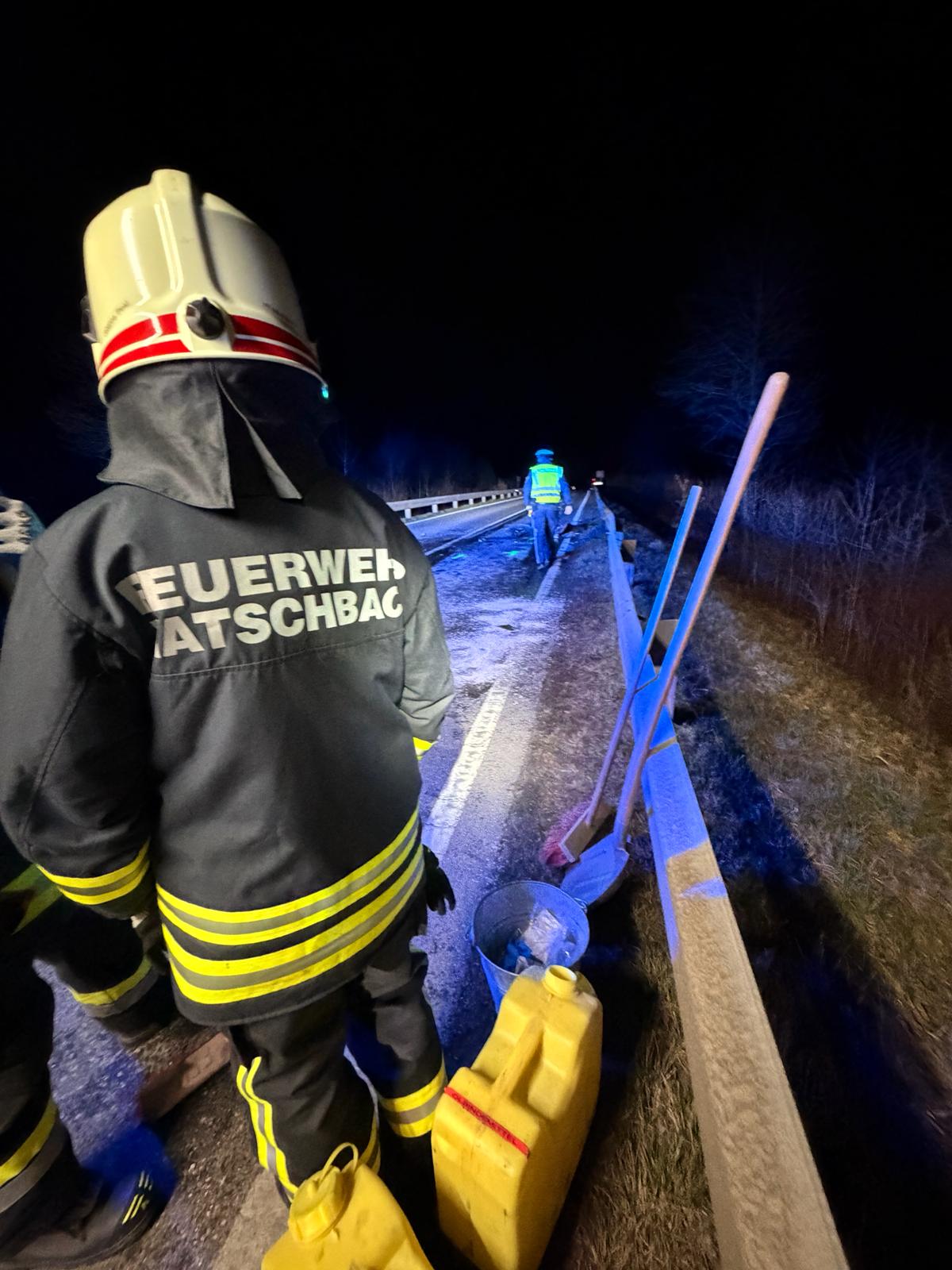 Im weiteren Verlauf unterstützte der Streckendienst bei den Aufräumarbeiten mit Ölbindemittel und Ölspurtafeln.