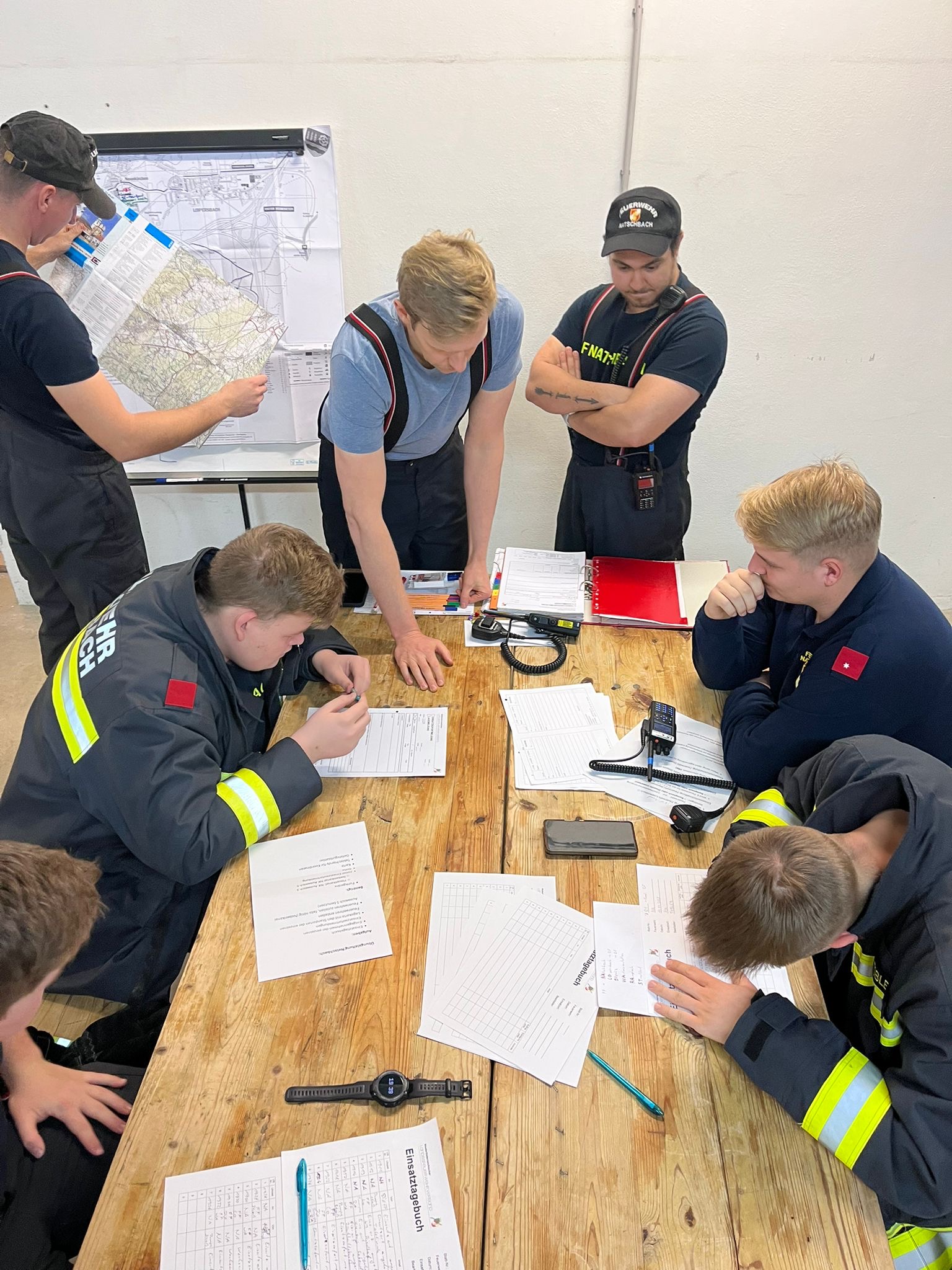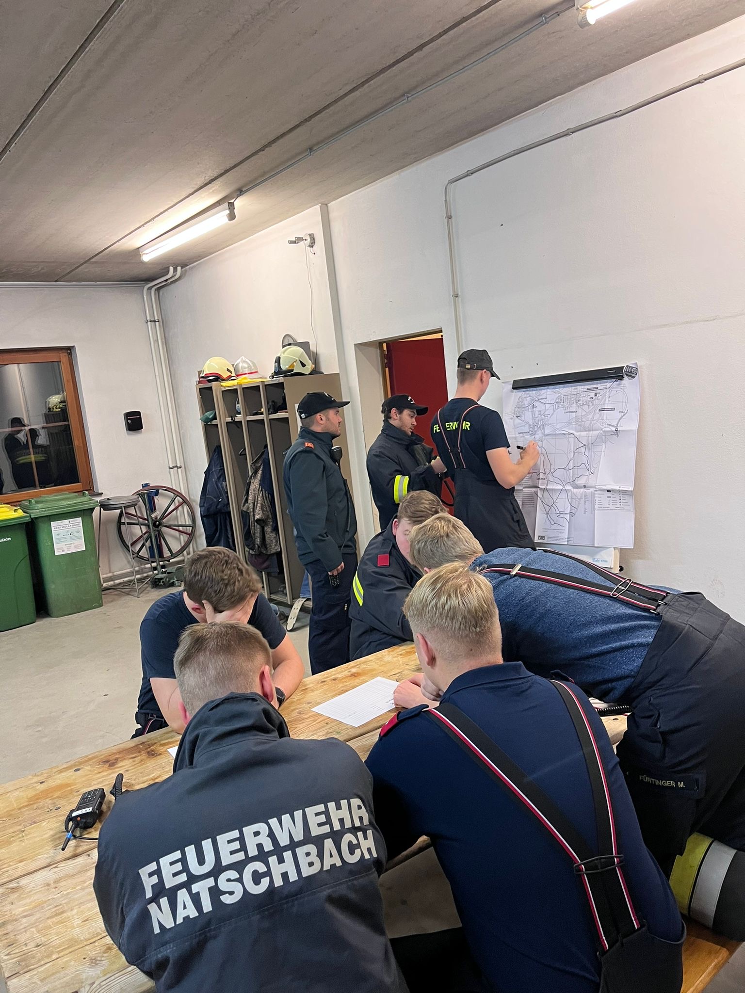 Die Feuerwehr Natschbach fungierte außerdem als Übungsleitung. Von dort aus wurde der Funkverkehr überwacht und koordiniert, ein Einsatztagebuch geführt sowie eine Lagekarte erstellt.